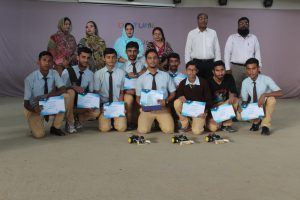 Korangi Academy’s robo teams won the ‘Good Team Spirit Award’ and were highly encouraged & appreciated by the Chief Guest Ms. Samreen Amir, Dean of Ziauddin University & Dr. Faziullah Abbasi, Chairperson, Dawood University.