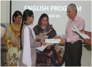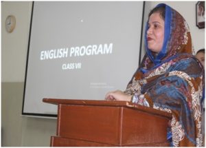 On 2nd May, 2019, an English Program for the Class VII students was organized in school’s Cafeteria. In the program students presented various skits in English, sing poems, participated in a debate contest. The Chief Guest of the Program was Rear Admiral (R) Syed A. Baqar HI (M).