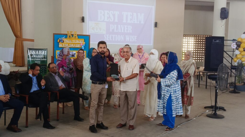 The Annual Function for the academic year 2024–2025 was held on Thursday, 23rd October 2025. Mr. Ejaz Baig, a leading educationist and trainer in ECE and Leadership at PIM, served as the Chief Guest. Other Guests of Honour included Mr. Zafar Iqbal Chaudhry, President CDSS GB; Engr. Nazim F. Haji S. St, Chairman Management Committee and Member GB CDSS; Mr. Shafqat Bokhari, Member Governing Body CDSS; Rear Admiral (Retd) S. A. Baqar, HI(M), Member Governing Board INFAQ Foundation; Mr. Yasir Ashraf, Member GB & CE CDSS; Mr. Faheem Akhtar, Management Coordinator CDSS; Mr. Sohail Ayub, Chief Manager Operations INFAQ Foundation; Commodore (Retd) Khalid Wasim, Principal SOS Technical Training Institute; Mrs. Asma Nasir, Principal K.A.; and Mr. Rizwan Amjad, Vice Principal K.A.