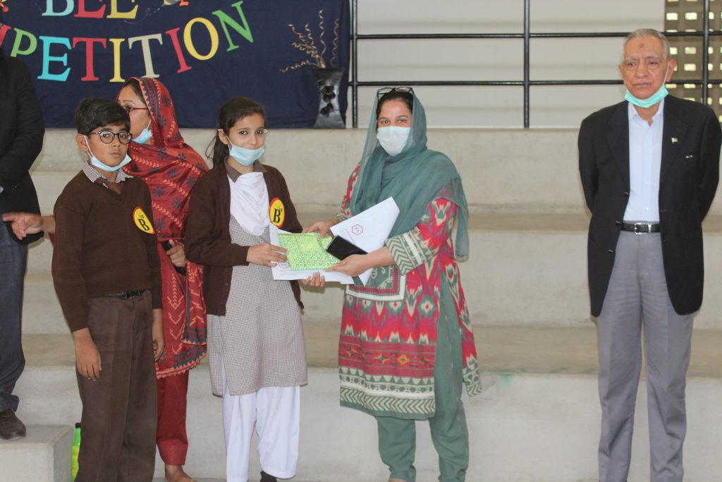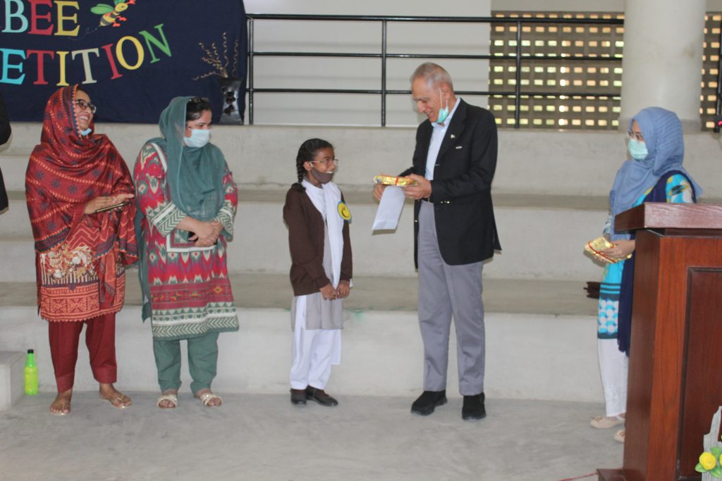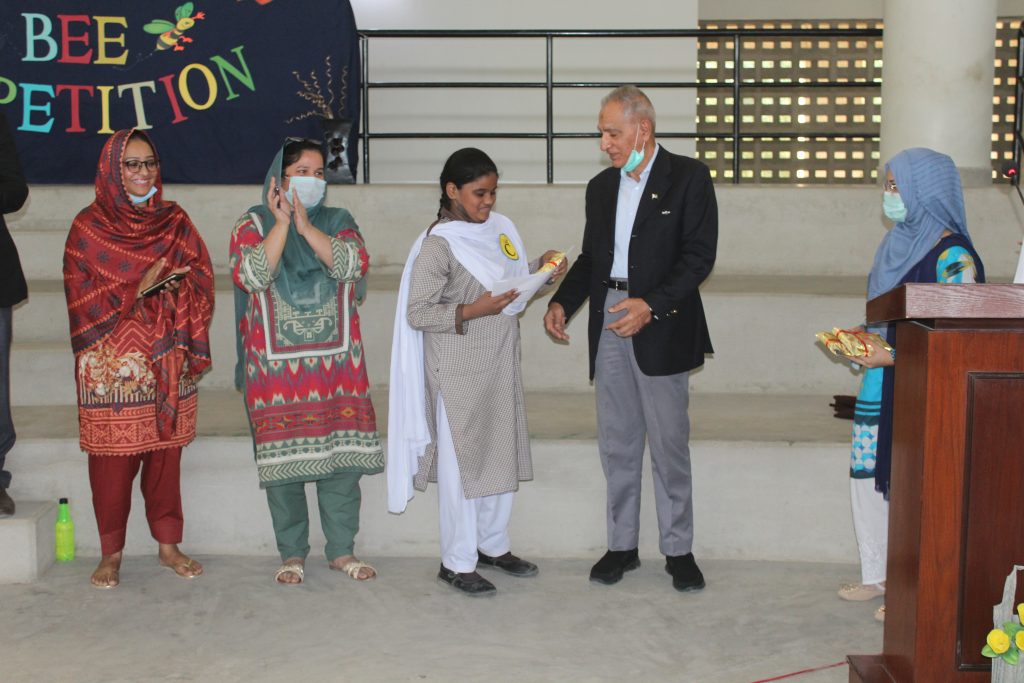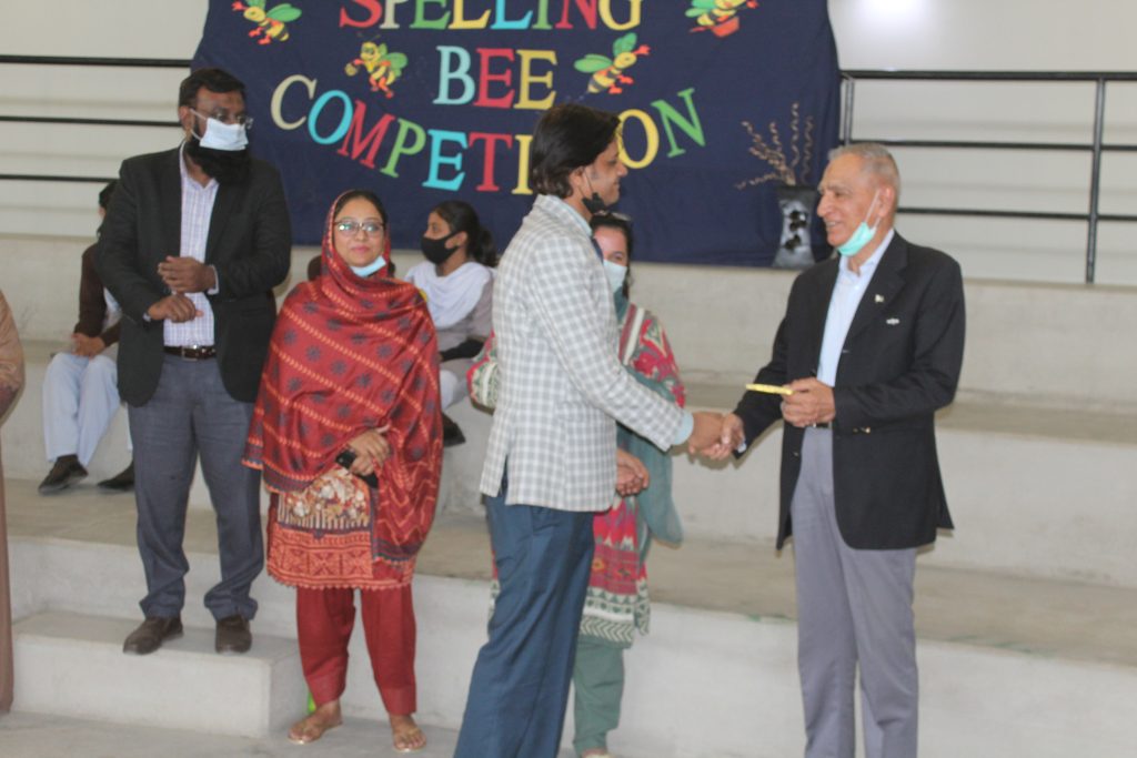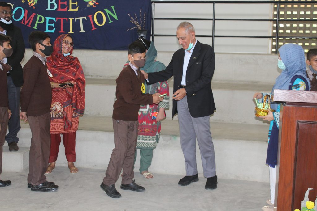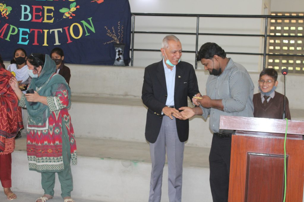 An in-house Spelling Bee Competition was held on 13th December, 2021 in S.M. Swaleh Naqvi Multipurpose Hall.  Syed A. Baqar HI(M), Rear Admiral (Retired), CE, Member MC & GB CDSS was the guest of honor. The event was also attended by Mrs. Saira Zaidi, Head, Infaq Education & Training Centre (IETC), Mr. Khalid Wasim, Principal, SOS Technical Training Institute (INFAQ Foundation Campus), and Mrs. Asma Nasir, Principal, Korangi Academy.