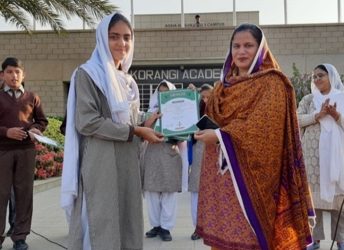 A shield & medal was awarded to Warisha Khan student of Class VIII-A by Mrs. Asma Nasir, Principal, KA for obtaining the 2nd position in the Digital Technology Grade Scope Competition held on 13th September, 2019.