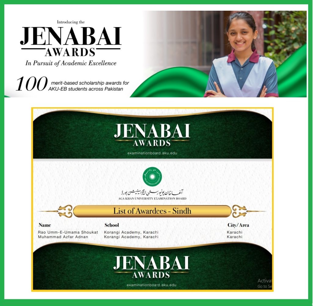 Two students from SSC-I, Rao Umm-E-Umama Shoukat and Muhammad Azfar Adnan, have achieved remarkable success by winning the prestigious Jenabia Awards, which recognize outstanding merit among AKU-EB students across Pakistan. Their accomplishments highlight dedication and excellence in academics, setting a commendable example for their peers.