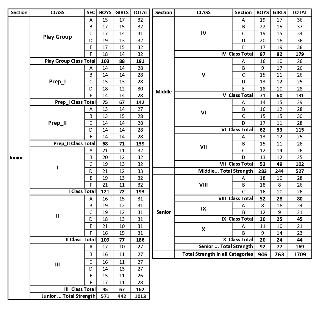 The current Class-wise Students’ Strength of Korangi Academy for the academic year 2025-26 is as under:
