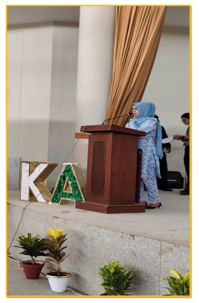 The Annual Function for the academic year 2023-24 was held on Saturday, 26th October 2024. Mr. Abdul Sattar, Former Assistant Commissioner, served as the Chief Guest. Other Guests of Honor included Mr. Zafar Iqbal Chaudhry, President of CDSS GB; Nazim F. Haji, Chairman of the Management Committee and Member of GB, CDSS; Mrs. Nasreen Nemat Ali, Member of GB, CDSS; Mr. Yasir Ashraf, Member of GB & CE, CDSS; Mr. M. Umar Shah Rukh Khan, General Manager of CDSS; Mrs. Saira Zaidi, Head of IETC; Mr. Sohail Ayub, Chief Manager of Operations at INFAQ Foundation; Mrs. Asma Nasir, Principal of KA; and Mr. Rizwan Amjad, Vice Principal of KA. Distinguished alumni Mr. Amir Ejaz and Ms. Rida Zehra also attended the function.